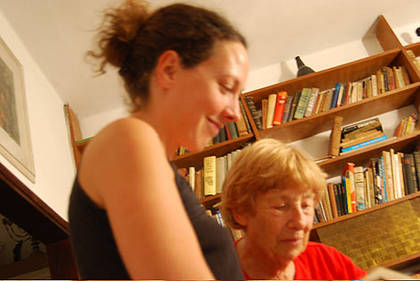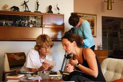 Anny Götzler wohnt in einer Wohnung an dem Platz, auf dem Yitzhak Rabin am Abend des 4. November 1995 bei einer Veranstaltung unter dem Motto „Ja zum Frieden, Nein zur Gewalt“ ermordet wurde. Anny Götzler hat eine Freundin eingeladen, Stella Finkelstein. Die beiden Frauen berühren uns sehr und bringen uns mit ihren Lebensgeschichten auch zum Lachen. Wir verbringen fast den ganzen Tag mit den beiden Frauen und lauschen ihren Doppelconferencen.