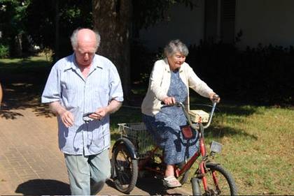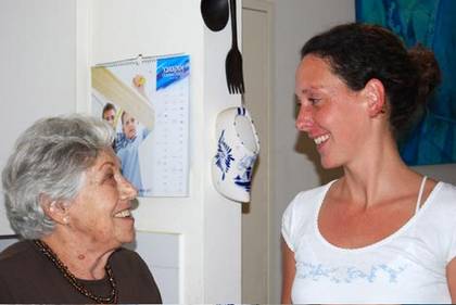 Wir besuchen Kitty Merkel und ihren Lebenspartner Paul Zwicker in einem Altersheim in Kfar Saba. Paul begrüßt uns schon am Gang vor ihrer Wohnungstüre mit einem herzlichen und sehr wienerischen „Habe die Ehre!“. Kitty hat sich per E-mail bei uns gemeldet, das Jewish Welcome Service hat einen Brief an die Bewohner des 15. Bezirks geschickt, die sie in der eigenen Adressdatei führen. Wir haben vorher nicht miteinander telefoniert. Wir sind froh, dass wir einander trotzdem „gefunden haben“ und die Ausmachungen per E-mail ausreichend waren. Beide erzählen uns aus ihrem sehr bewegten Leben. Paul erzählt uns viel von politischen Zusammenhängen während wir am Balkon stehen, von dem aus man direkt auf die palästinensischen Gebiete sieht. Er ist im 10. Bezirk aufgewachsen und war der einzige Jude in seiner Schule, 1939 flüchtet er in einer Gruppe nach Israel. Die Gruppe hat sich jahrelang noch getroffen – von den ungefähr 20 jungen Menschen leben heute noch 8.