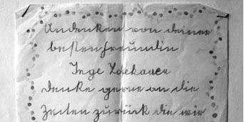 Abschiedsbrief der jüdischen Schülerin Inge Zdekauer an ihre “arische” Schulfreundin Edith Jäger. Inge Zdekauer (geb. 1930) und ihre Eltern wurden 1942 nach Theresienstadt und 1944 nach Auschwitz deportiert und dort ermordet. Foto: Edith Jäger