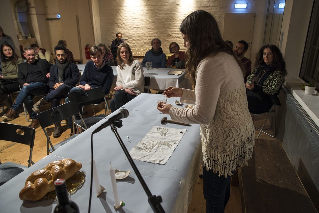 Die Sabbath-Dinner-Performance inklusive Workshop & Konzert bietet Teilnehmenden die Gelegenheit, sich partizipativ mit individuellen Lebensbrüchen und transgenerationalen Traumata auseinander zu setzen.