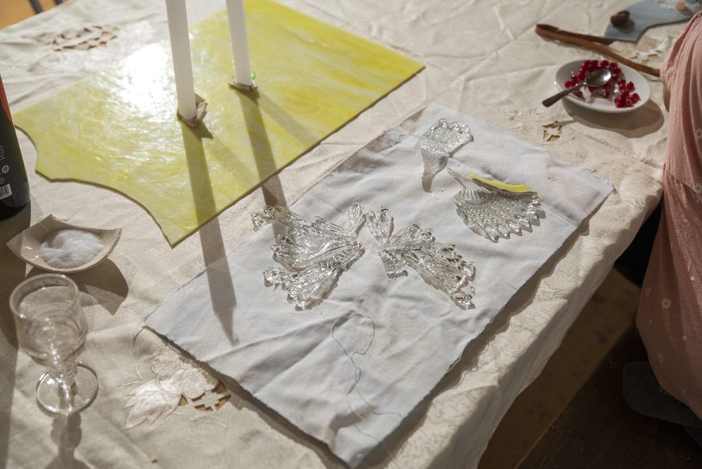 Die aus Israel stammende Glas- und Performancekünstlerin Alexandra Ben-Abba setzt sich in ihren fragilen Arbeiten damit auseinander, wie Zerbrochenes, wie „Broken Pieces“, wieder zusammengefügt werden können.